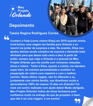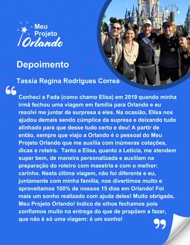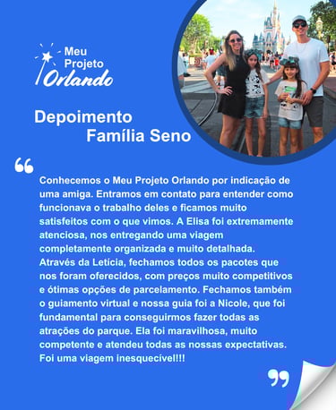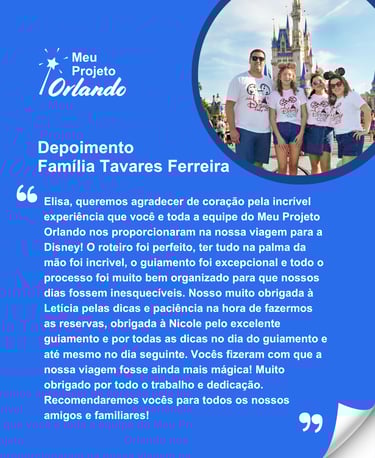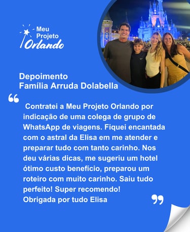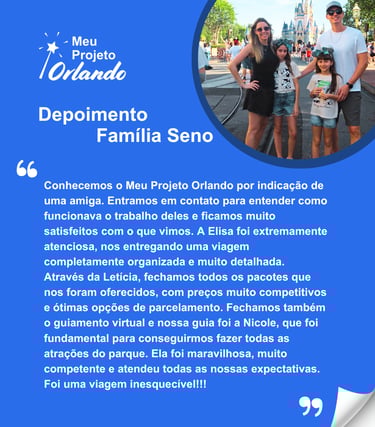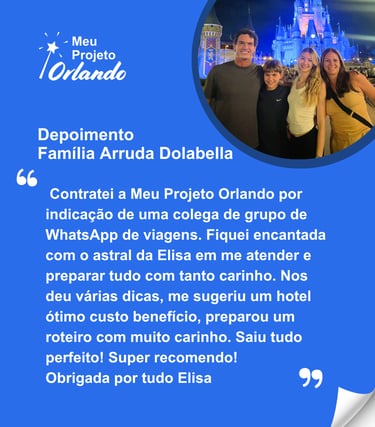 Depoimentos de clientes com momentos inesquecíveis de sua viagens para Orlando e Disney.