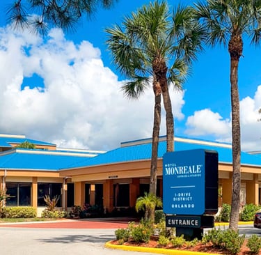 O Hotel Monreale Express & Studios é o mais novo hotel da rede brasileira Monreale, trazendo o atendimento acolhedor que já conhecemos. Atualmente em processo de reforma, é uma opção ideal para quem busca economia e boa localização em Orlando. O hotel oferece piscina ao ar livre, estacionamento gratuito, recepção 24 horas, caixa eletrônico, Wi-Fi grátis, além de quartos equipados com frigobar e microondas alem de uma paia de apoio. O café da manhã em estilo buffet é oferecido mediante taxa adicional.