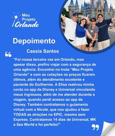 Gratuito para, parques Universal, Disney, Seaworld, Disney Springs e Outlet Lake Buena Vista Factory Outlets.