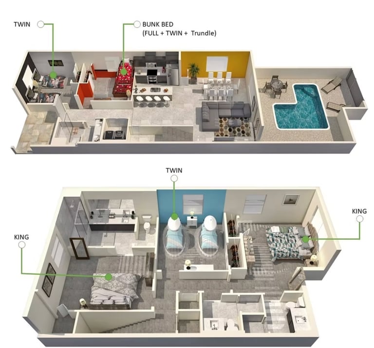Alugar uma casa ou apartamento em Orlando é optar por mais CONFORTO e ECONOMIA na sua viagem. Trabalhamos com diversas opções em vários condomínios da região, todas equipadas com Cozinha Completa, Lavanderia, TV a Cabo e Roupa de Cama-Mesa-Banho. Algumas unidades ainda oferecem Piscina Privativa, ambientes tematizados e acesso a Clubes Sociais com SPA. Confira duas de nossas casas:
