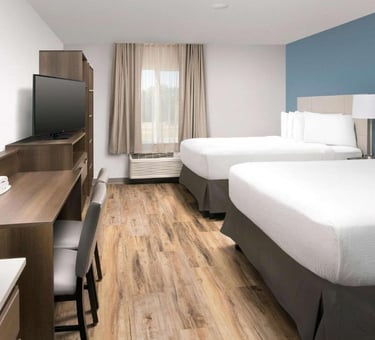 O Woodsprings é um hotel econômico em Orlando que oferece quartos simples com piso sem carpete e uma cozinha básica, sem utensílios como panelas, pratos ou talheres, sendo uma alternativa interessante para quem está com orçamento limitado mas precisa desse recurso. As suítes acomodam até 4 pessoas em camas queen ou king-size, algumas com sofá-cama, e contam com Wi-Fi, estacionamento gratuito e lavanderia. A limpeza não é diária, sendo realizada a cada 14 dias, podendo ser solicitada antes mediante taxa extra. Uma opção prática para quem busca hospedagem barata, bem localizada e funcional.