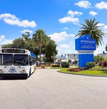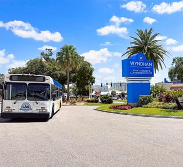 O Avanti Palms também oferece shuttle programado para alguns parques, com horários limitados e mediante agendamento prévio, sendo uma alternativa para quem não pretende alugar carro.