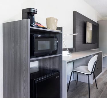 Além do café preto cortesia o dia todo, durante o horário de almoço e a noite, a área do café da manhã que conta com microondas e frigobar pode ser utilizada.Todos os quartos possuem microondas e frigobar e comportam de 2 a 4 pessoas.