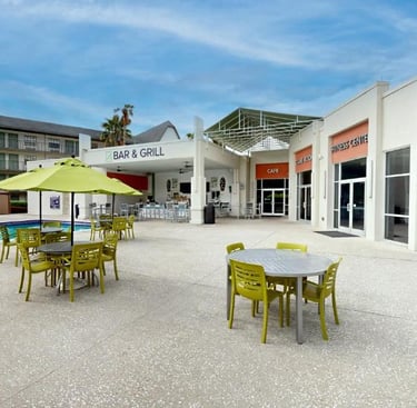 O Celebration Suites é um dos hotéis econômicos mais bem avaliados de Orlando, perfeito para quem busca praticidade e conforto durante a viagem. Localizado em Kissimmee, a poucos minutos dos parques da Disney, o hotel oferece apartamentos amplos que se assemelham a flats, com vários cômodos, totalmente reformados, sem carpete e equipados com cozinha completa e utensílios. Essa estrutura permite que os hóspedes tenham a sensação de estar em uma casa, mas com toda a praticidade dos serviços de hotel. Entre as comodidades estão Wi-Fi gratuito, piscina, academia, lavanderia e uma cafeteria próxima à recepção. Nos arredores, há farmácia 24h, restaurantes, bares e opções de entretenimento a poucos passos, além da facilidade de caminhar até o Old Town e estar muito perto do famoso World Food Trucks.